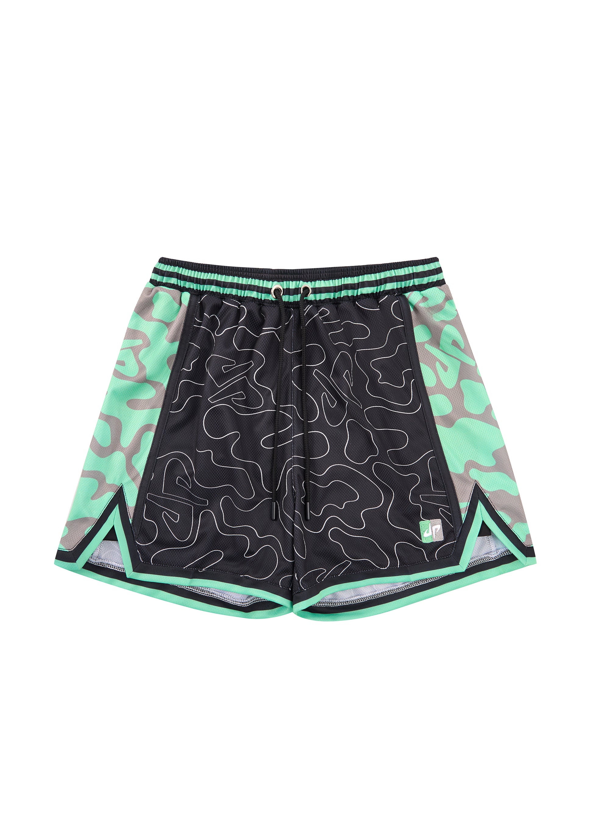 The DP All Star Road bundle combines the black/mint jersey and matching shorts featuring bold graphic prints for a fearless all-star vibe.